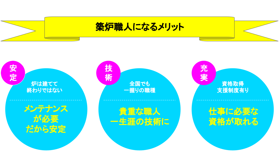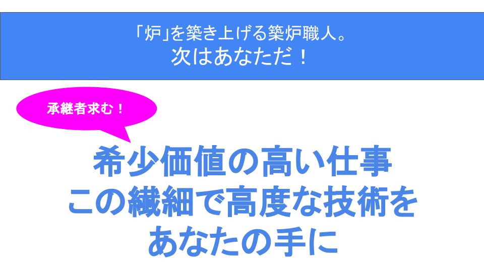 | 仕事内容 | 焼却炉やボイラー等で耐火工事を行います。 多岐に渡る作業ですが、得意分野を伸ばせる様に考慮します。 ・足場組み ・解体 ・溶接 ・レンガ積み ・型枠取付 |